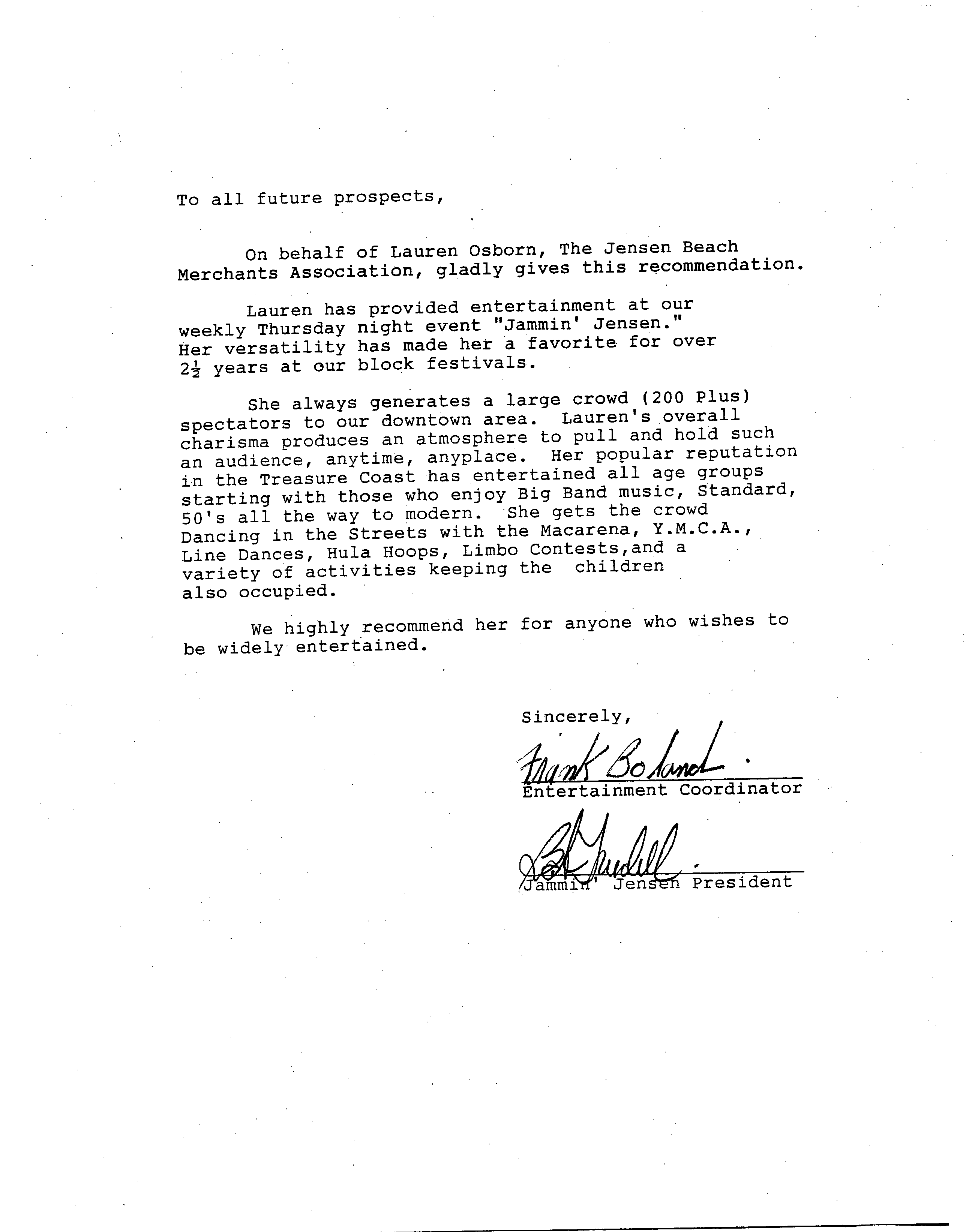 "Jammin Jensen" Thursday Night Street Festival